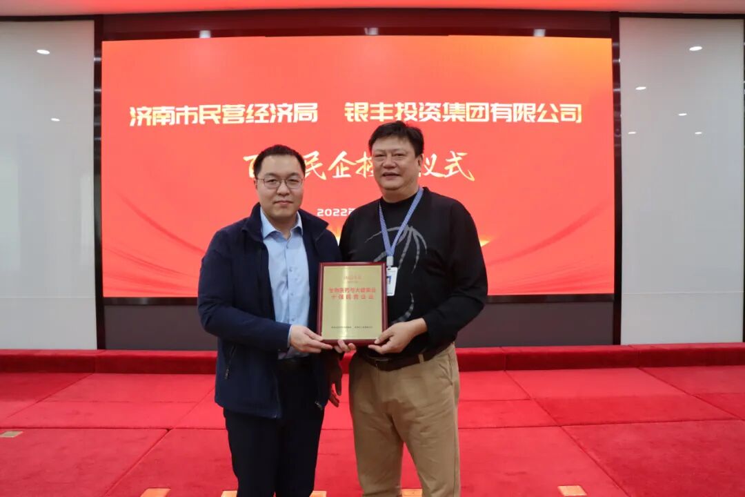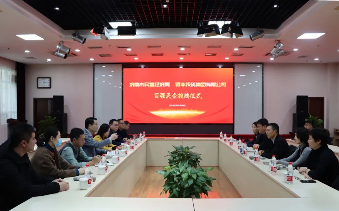 11月4日下午,济南市民营经济发展局、济南市工商联联合开展的“济南民企百强”授牌活动走进银丰集团。银丰集团被授予2022年度济南民营企业100强和2022年度生物医药与大健康业十强民营企业。