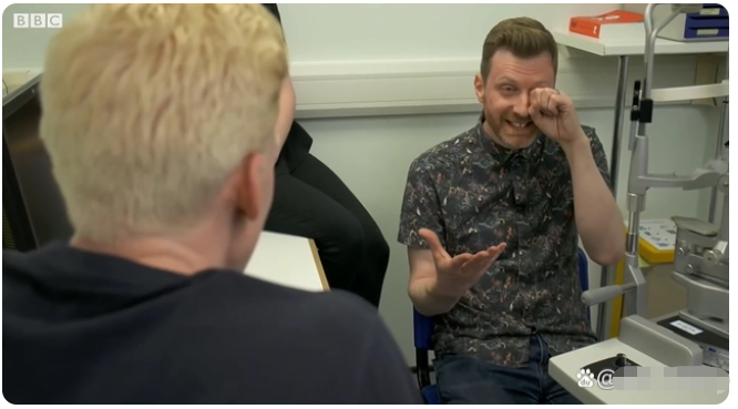 失明20年的詹姆斯·奥布莱恩重见光明后开心的笑起来