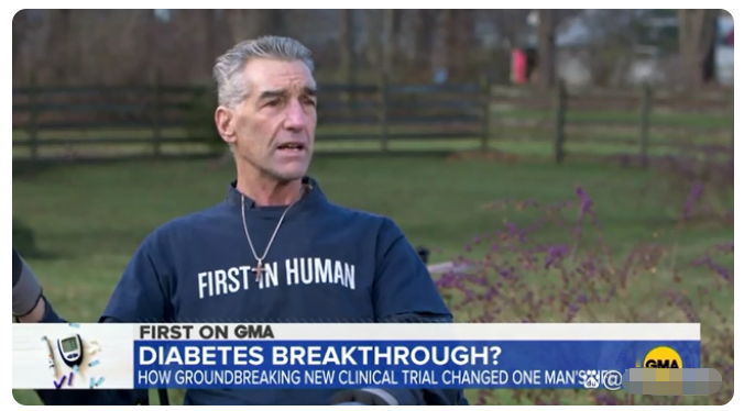 布赖恩谢尔顿患Ⅰ型糖尿病已经有50年之久,期间他时刻面临着疾病带来的风险,人生的每一分钟都在努力控制自己的血糖指数,幸运的是他参与了一项干细胞治疗糖尿病的临床试验,布莱恩的治疗效果是非常显著的,植入到布莱恩体内的干细胞不仅改善了他对胰岛素的需求,也提高了他身体制造胰岛素的能力。他的血糖指数一直保持在稳定状态,甚至可以连续几天不服用胰岛素了。