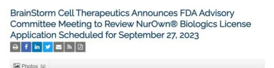 成体干细胞领军企业Brainstorm公司宣布,美国FDA将召集细胞、组织和基因疗法咨询委员会(ADCOM)召开会议审查其在研干细胞产品NurOwn®的生物制品许可申请(BLA),用于治疗渐冻症患者。