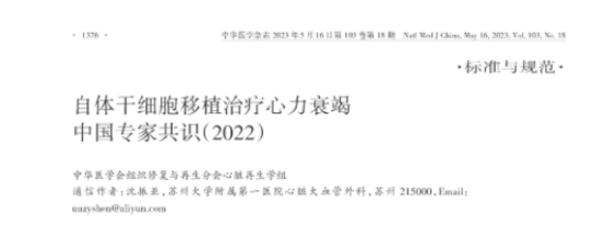 3.《自体干细胞移植治疗心力衰竭中国专家共识(2022)》发布;