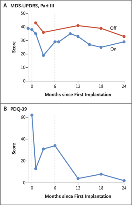 发表于顶级期刊《新英格兰医学杂志》的一篇案例报道:对一名69岁10年进行性特发性帕金森氏病病史的老年男性进行iPSC移植,而后对患者进行随访,结果显示,正电子发射断层扫描表明移植细胞存活;帕金森病相关评分在细胞移植后 18 至 24 个月稳定或改善。